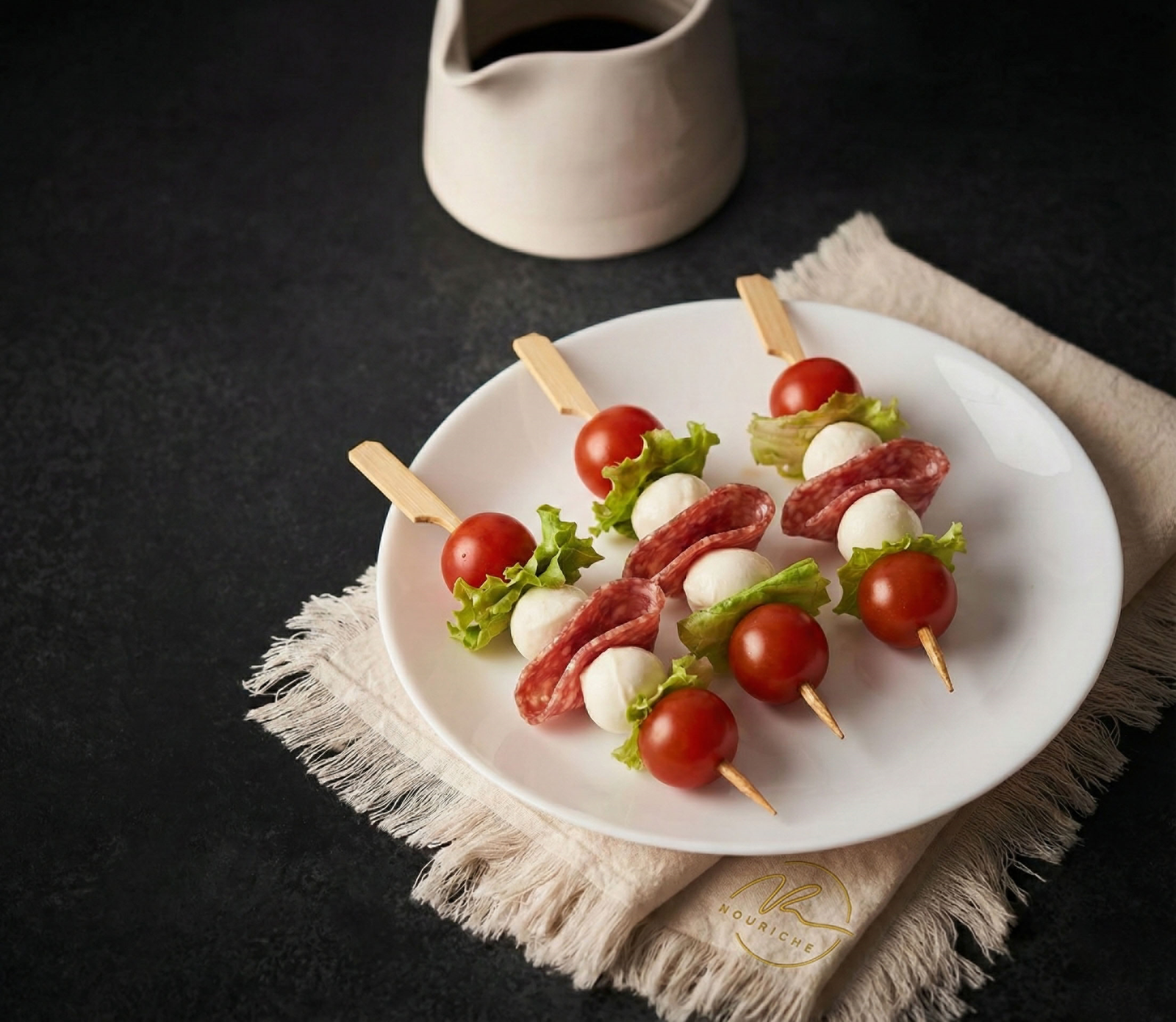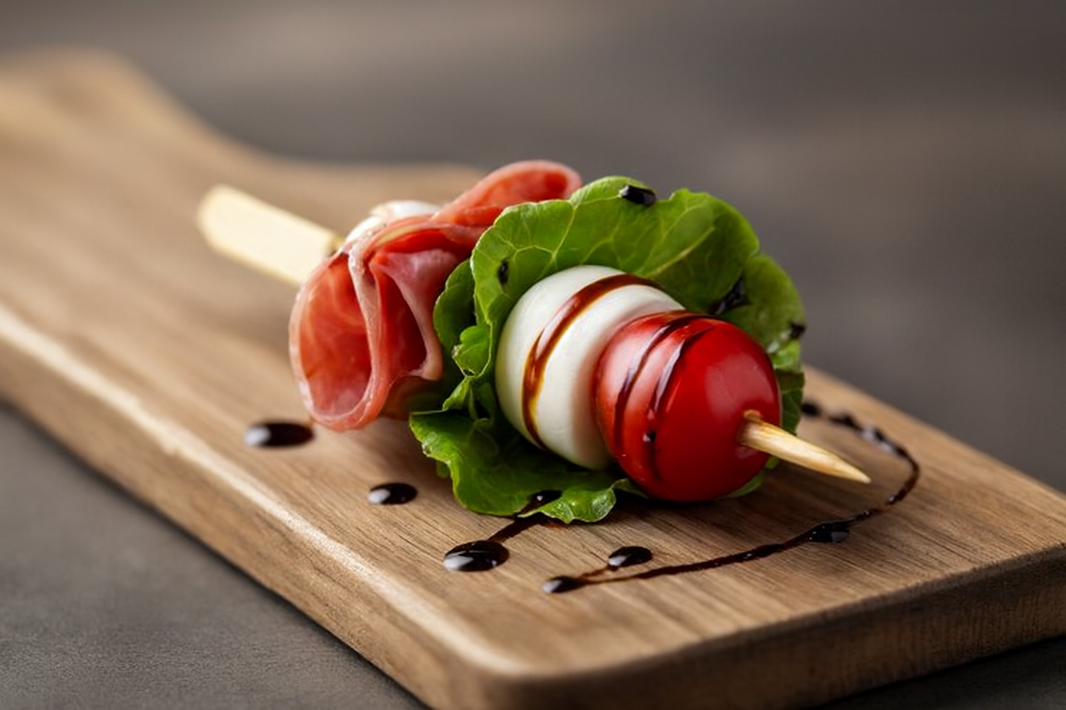 Mini skewer of Salami, mini mozzarella, lettuce & Cherry tomato