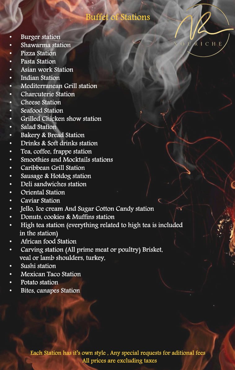 Modifications: Any changes to the menu or guest count must be finalized at least 7 days prior to the event.